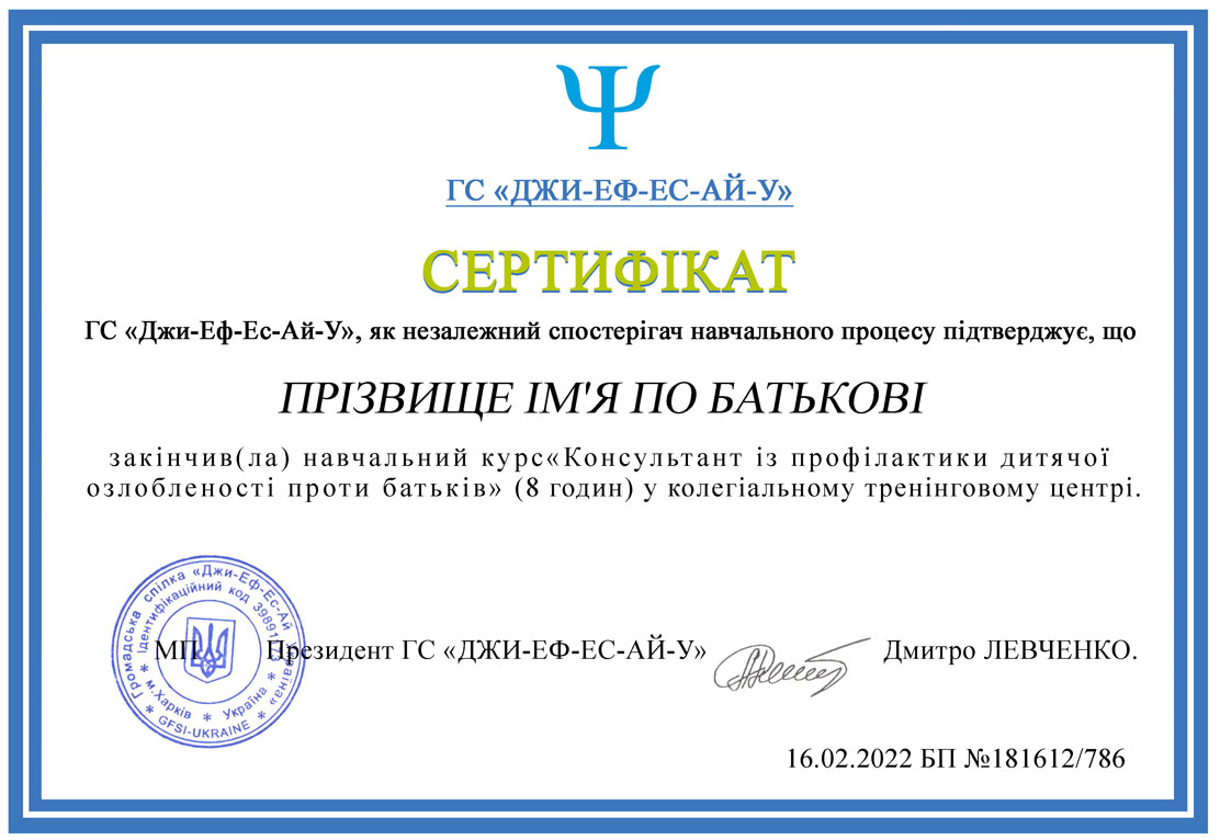 «Консультант із профілактики дитячої озлобленості проти батьків»