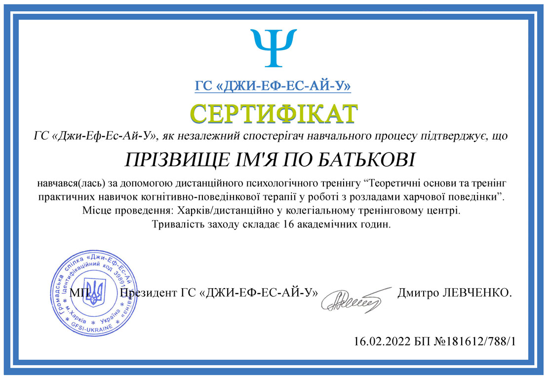 когнітивно-поведінкової терапії у роботі з розладами харчової поведінки