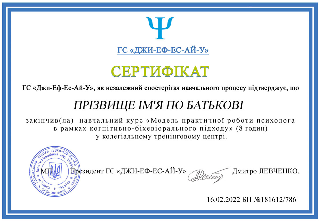 «Модель практичної роботи психолога в рамках когнітивно-біхевіорального підходу»