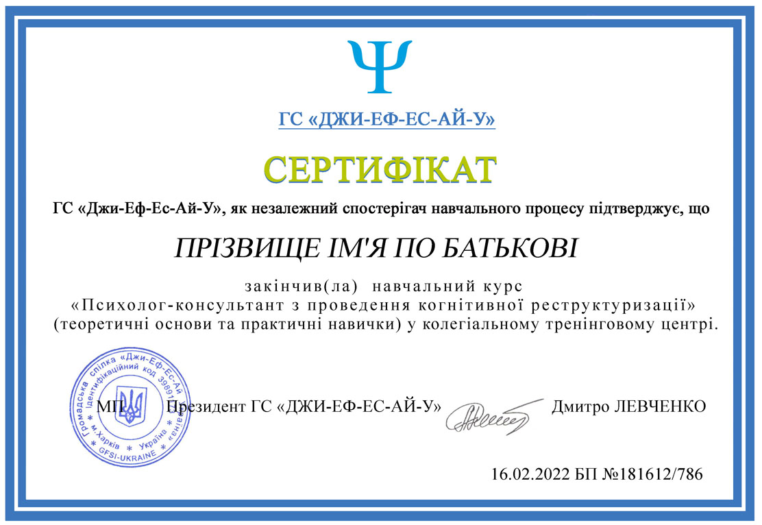 «Психолог-консультант з проведення когнітивної реструктуризації»